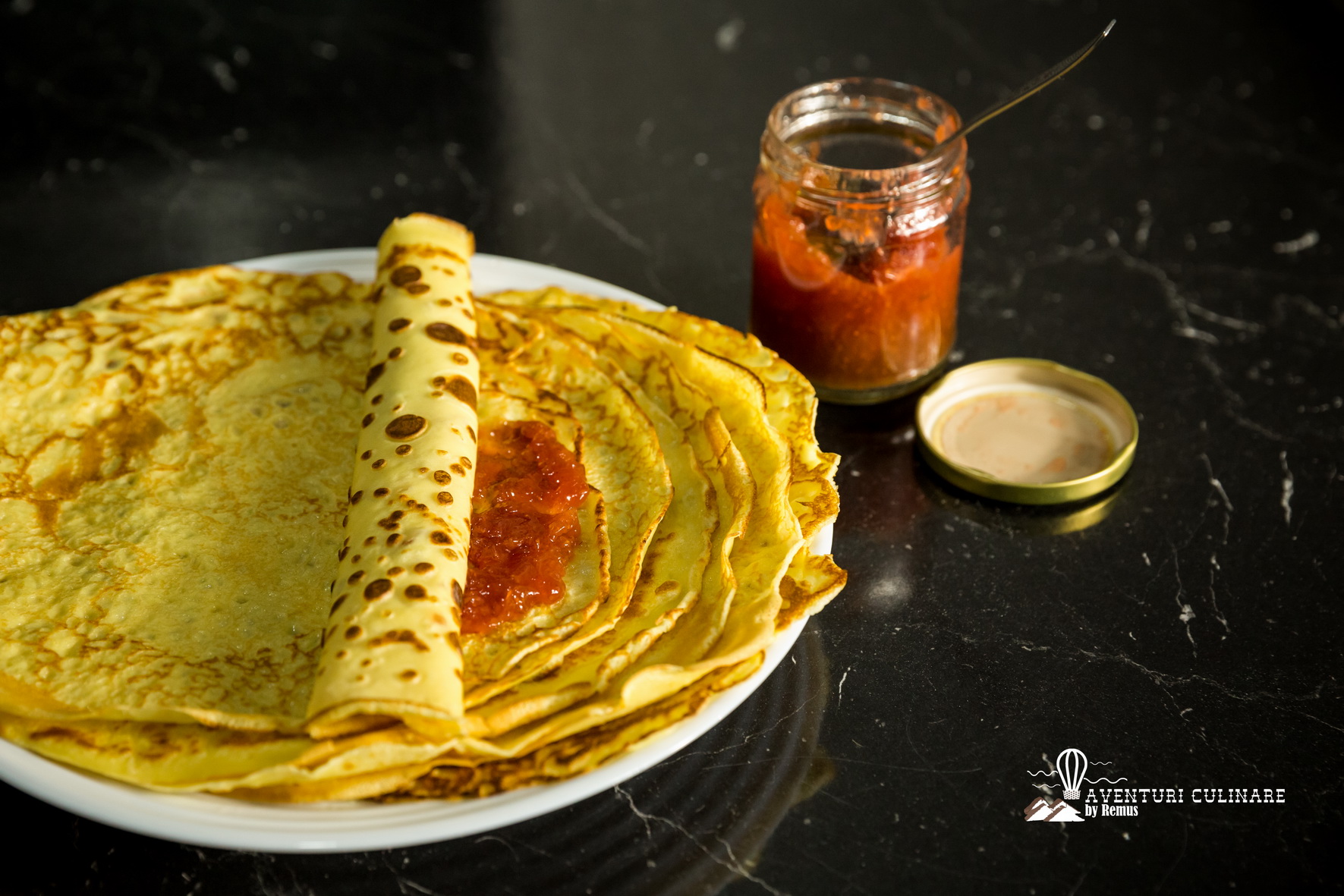1. Nu recomand zahăr în compoziția de clătite, deoarece se poate arde. Clătitele se mănâncă de obicei cu dulceață, care e deja dulce.