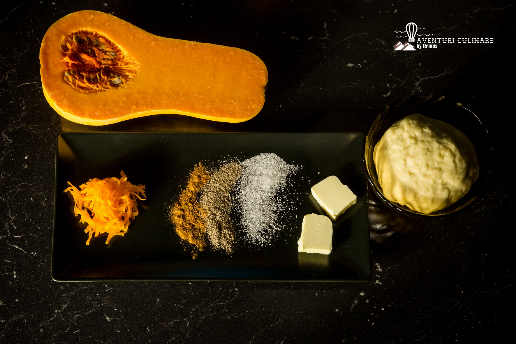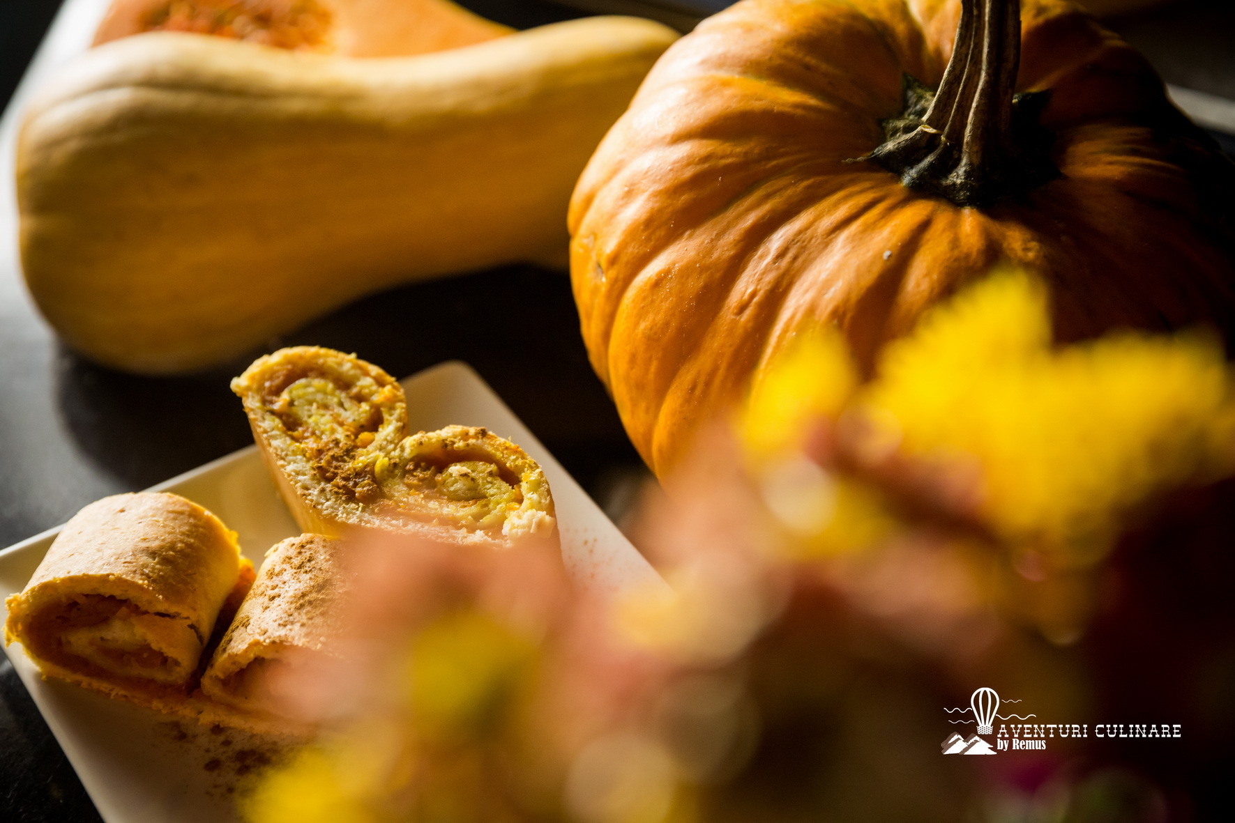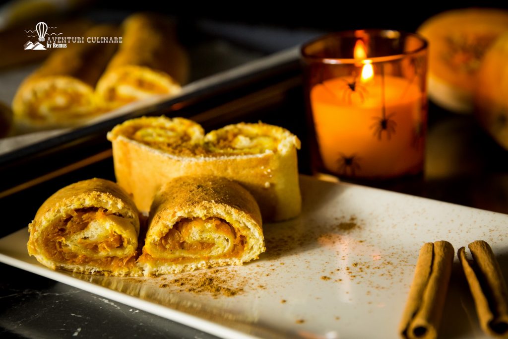 Procedez la fel și cu cealaltă jumătate de aluat și dovleac.