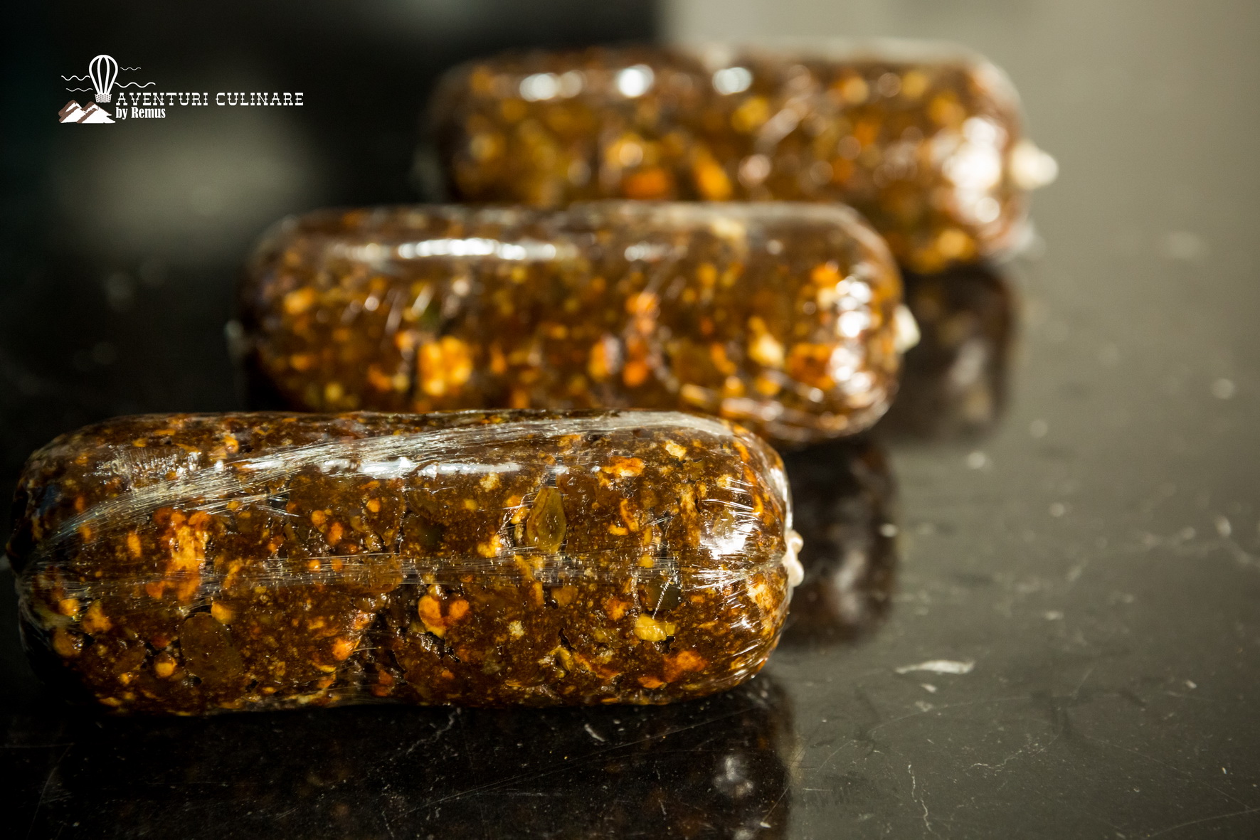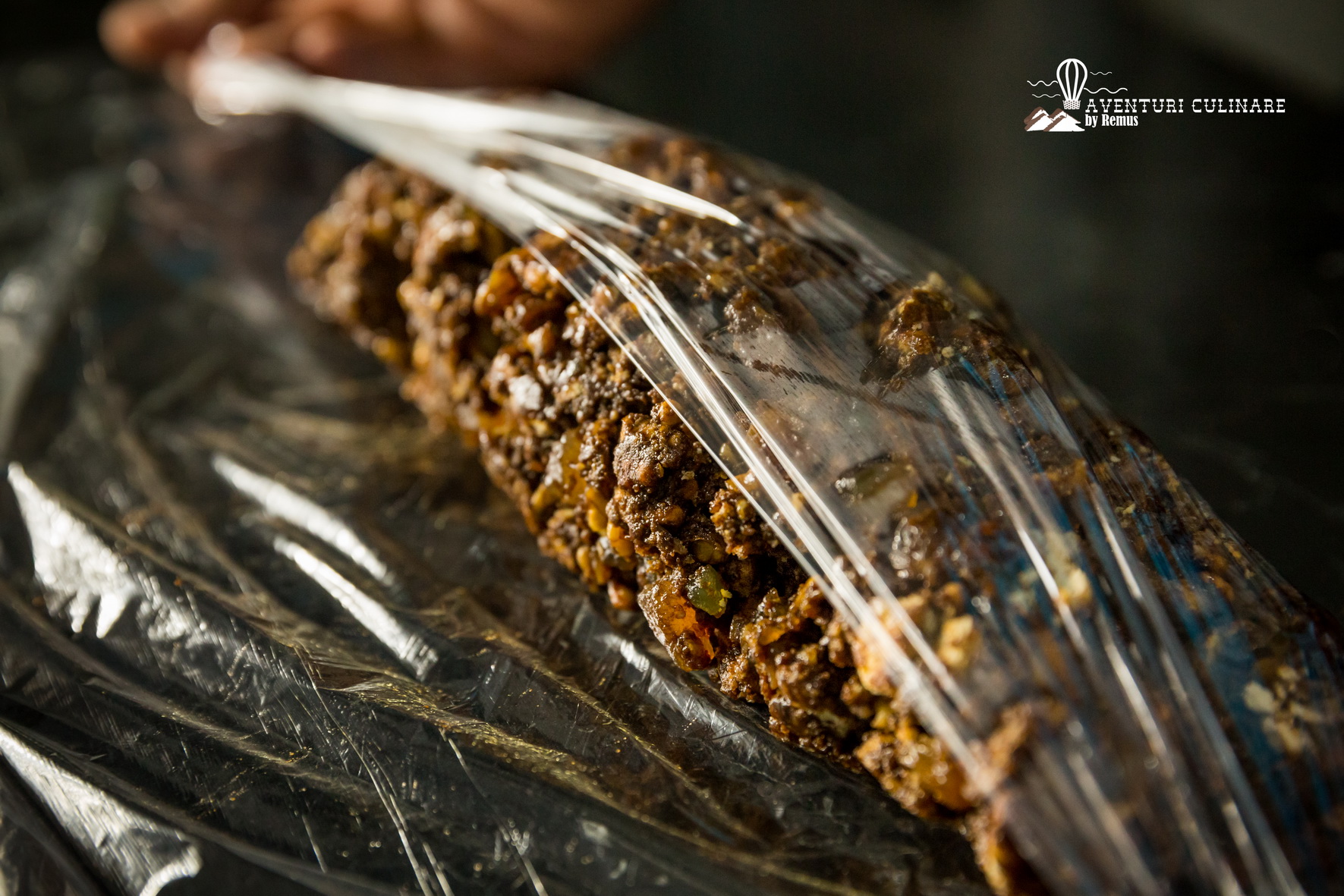 Fiecare dintre acestea o pun pe o folie de plastic, îi dau formă de salam și răsucesc bine capetele foliei.