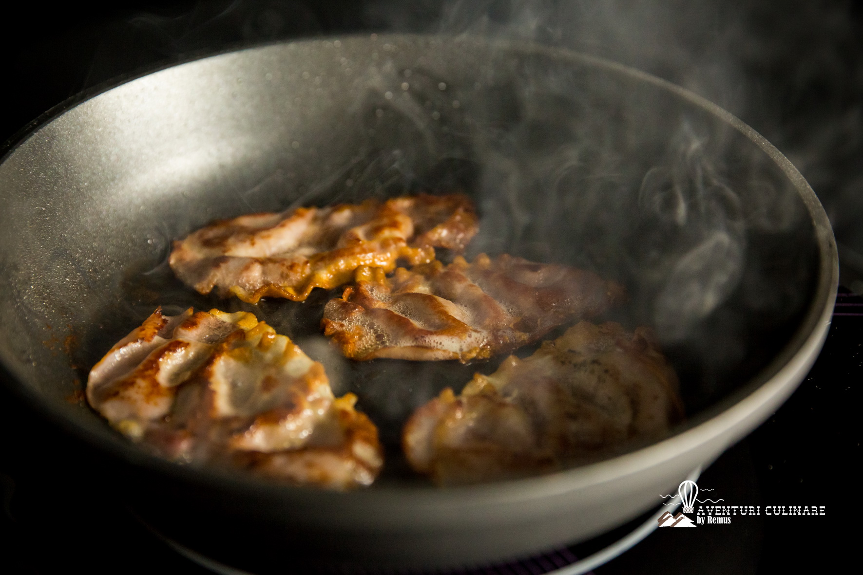 - Baconul se prăjește fără ulei, având suficientă grăsime.
